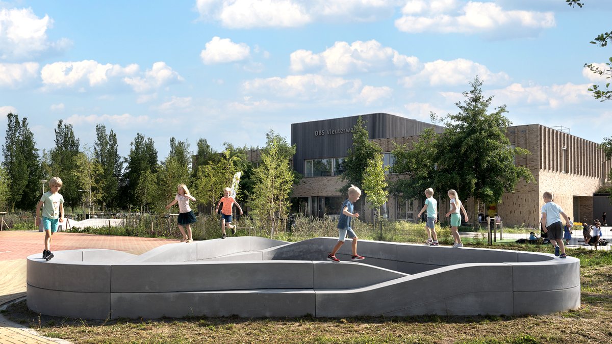 Ons schoolplein is een avontuurlijke, groene oase waar kinderen de natuur echt kunnen voelen. Op het grote plein vind je ook ons bijzondere kunstwerk gemaakt door Kunstenaarscollectief Maurer United. Het is een echte blikvanger en een plek waar kinderen elke dag op en rondom kunnen spelen.